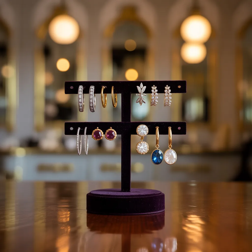 To maintain their condition, store statement earrings in a protective pouch, jewelry case, or hanging storage. Keeping them away from direct sunlight and moisture supports maintaining their appearance and lengthens their life.